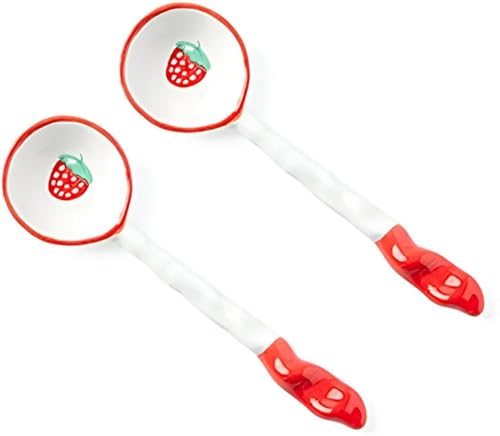 Generic - ملاعق ايس كريم - ملاعق حلوى سيراميك مع اوعية عريضة ومقابض طويلة، مزينة بطبعات لطيفة، مثالية للايس كريم والحساء واعدادات الطاولة الكاجوال بدرجات زاهية. (قطعة 2)