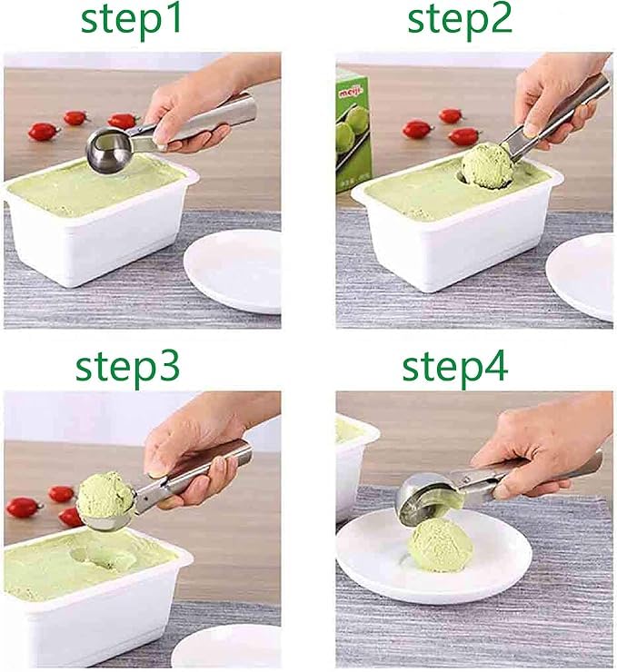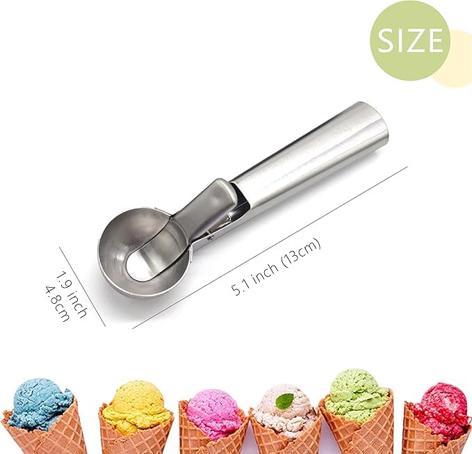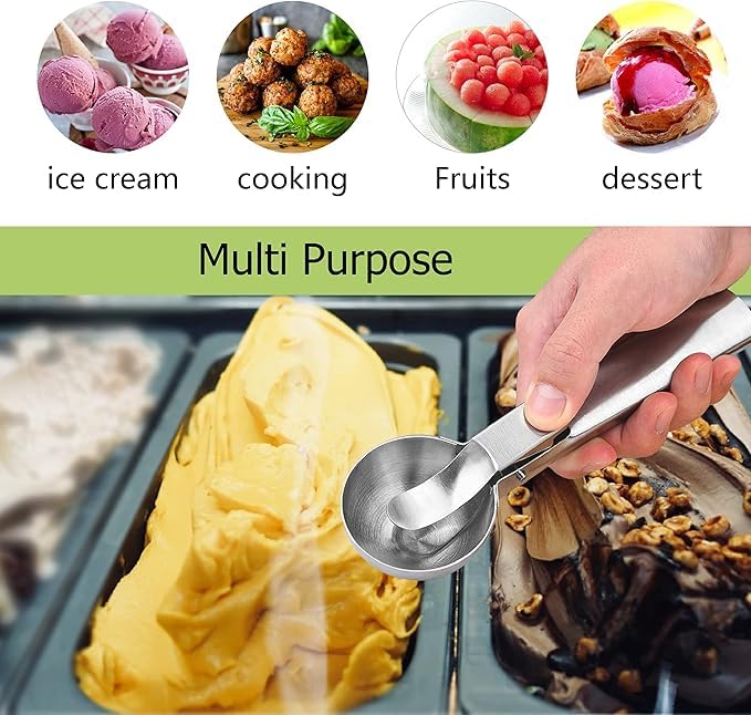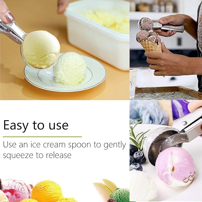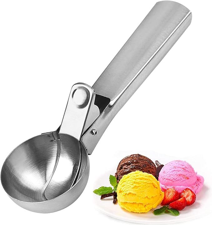 Generic - مغرفة ايس كريم، مغرفة بسكويت للخبز منفولاذ مقاوم للصدأ مع زناد سهل التحرير، مغرفة فواكه مع زناد سهلة الاستخدام ومريحة
