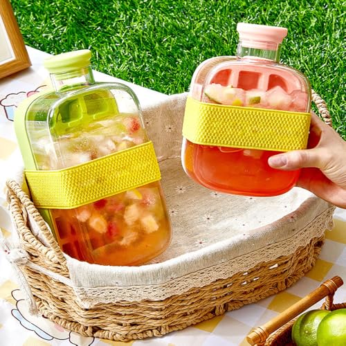 MVLIAST - زجاجة مكعبات ثلج 2 في 1 بدون لمس 17/27 اونصة، قالب مكعبات ثلج بدون لمس، كوب ثلج صيفي بارد للفريزر والنزهات الخارجية والقهوة والعصير والمشروبات (500 مل)