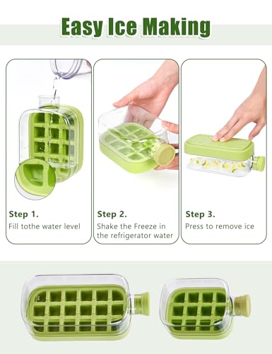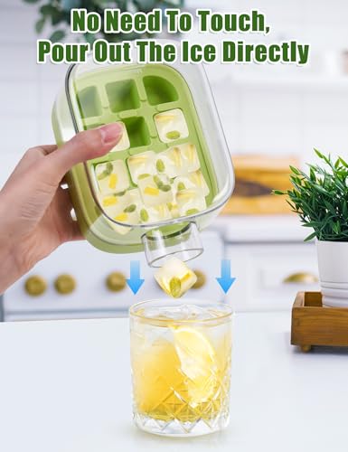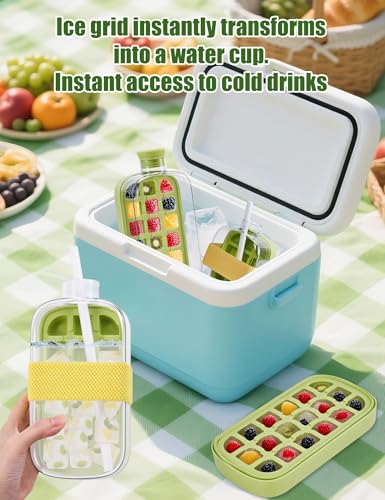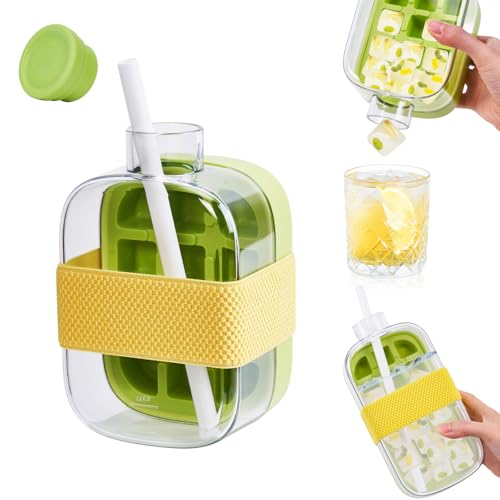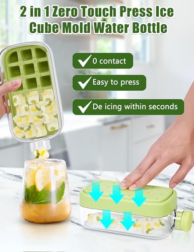 VIMAZ - زجاجة/قالب مكعبات ثلج مع غطاء – تصميم 2 في 1 كزجاجة مياه مع شفاط – إصدار 2025 بميزة تحرير الثلج بلمسة واحدة دون لمس – مثالية للفريزر، القهوة، العصير والمشروبات (أخضر، 500 مل)