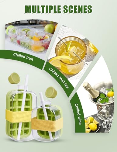 - 🧊【صنع ثلج فعال】زجاجة مكعبات الثلج لدينا تتيح لك تحضير الثلج بسرعة وبكل سهولة — فقط أضف الماء حتى مستوى التعبئة، ثم ضعها في الفريزر واستمتع بمكعبات ثلج جاهزة دون عناء، مما يلغي الخطوات المملة لمكعبات الثلج التقليدية - مثالية لمشروباتك المفضلة مثل القهوة المثلجة أو العصير أو الكوكتيلات.
