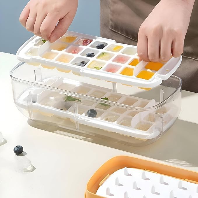 Generic - ماكينة صنع مكعبات الثلج، صندوق تخزين ثلج مبتكر مزدوج الطبقات، قوالب مكعبات ثلج سريعة الفك، صانع ثلج كسول يمكن إخراجه في ثانية واحدة - متعدد الألوان
