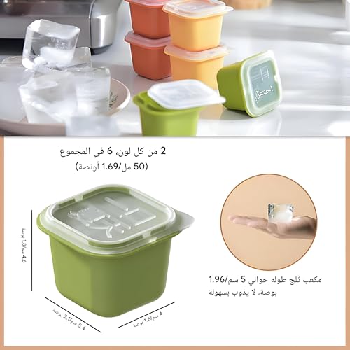 - 【 قابلة للتكديس ومستقلة ومريحة】 يمكنك بسهولة تكديس صواني الثلج لتوفير مساحة الثلاجة. تم تصميم قوالب مكعبات الثلج للعصائر وهي سهلة الاستخدام، خذ واحدة تلو الأخرى، فهي مريحة ولا تضيع الكثير. تم تصميم الفتحة العلوية بحيث يتدفق الماء من الفتحة الصغيرة دون انسكاب مباشرة.