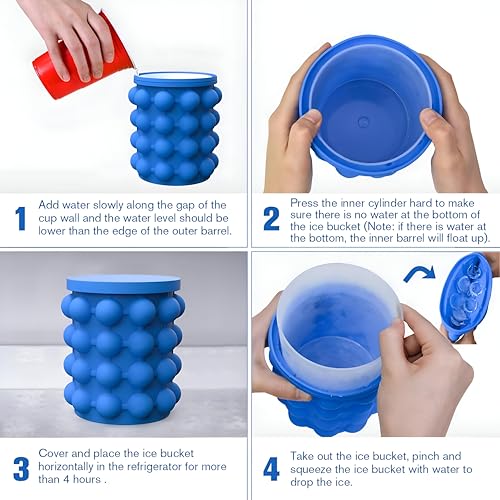 - يمتاز بعملية صنع ثلج بسيطة. أولًا، قم بإضافة الماء بحرص على طول فجوات الجدار، مع التأكد من بقاء منسوب الماء أسفل الحافة الخارجية. ثم، اضغط بقوة على الأسطوانة الداخلية لطرد الهواء ومنع تجمع الماء في القاعدة. قم بتغطية الجردل وجمده بشكل أفقي لمدة 4 ساعات على الأقل. في النهاية، اضغط برفق لإخراج مكعبات الثلج الطازجة، والتي يمكنك استخدامها فورًا لتبريد مشروباتك المفضلة.