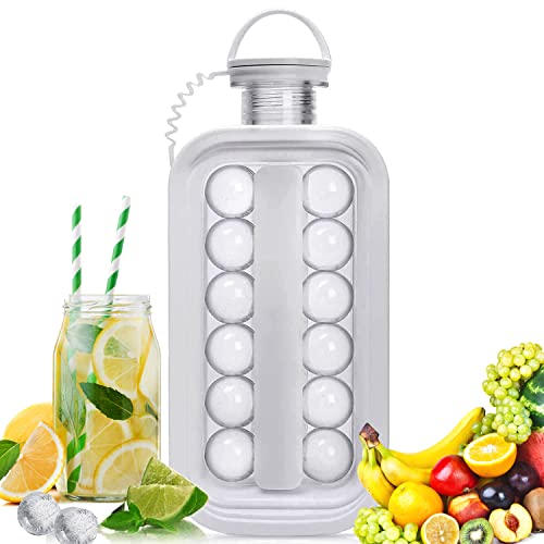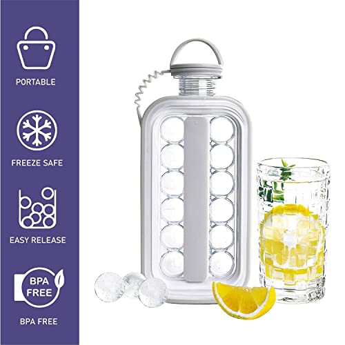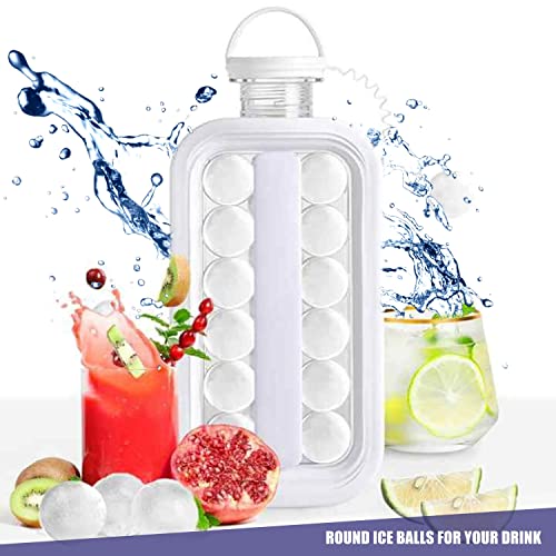 Onefonno - صينية مكعبات الثلج - ماكينة صنع كرات الثلج المحمولة 2 في 1 - صانع كرات الثلج المستديرة - قالب مكعبات ثلج محمول - إبريق صانع كرات الثلج مع 17 شبكة - خالية من البيسفينول أ