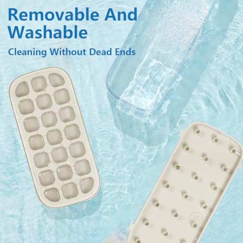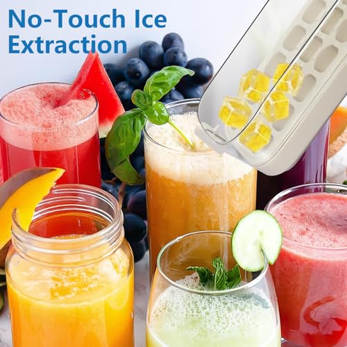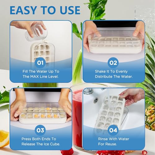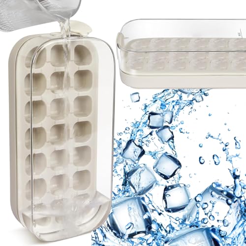 Exrp - قالب مكعبات الثلج مع غطاء وسلة، 21 قطعة من قوالب مكعبات الثلج سريعة الملء للفريزر، سهلة الضغط لفكها، قوالب مكعبات الثلج البيضاء بدون لمس