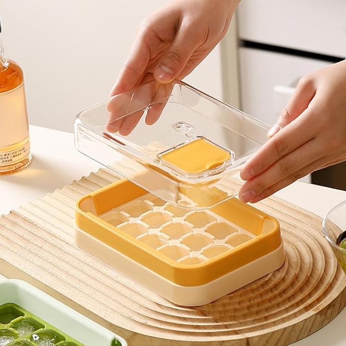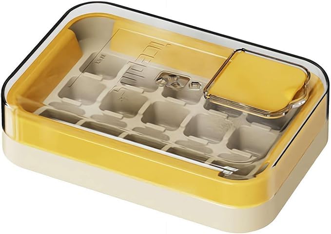 Generic - قالب مكعبات الثلج مع غطاء وعلبة خالي من البيسفينول أ سعة 15 مكعب ثلج سهل الضغط لتحرير الثلج للفريزر مع علبة للشاي والقهوة، اكسسوارات ركن القهوة، أصفر