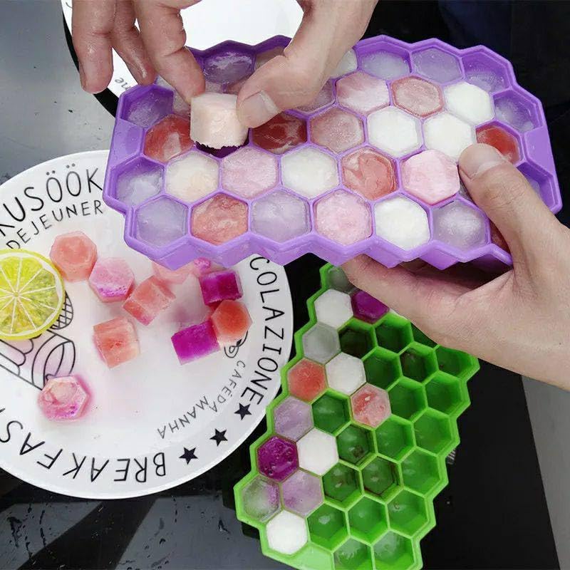 Generic - صينية مكعبات ثلج مع غطاء قابل للإزالة، قالب بشكل خلية نحل خالي من مادة بيسفينول أ