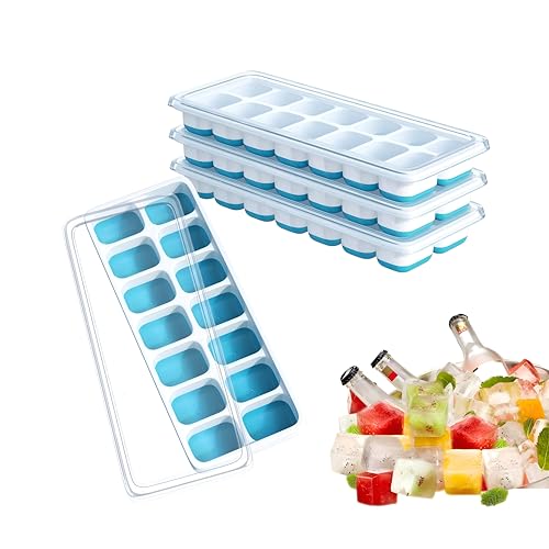 Generic - صواني مكعبات الثلج - تصميم مربع 14 تجويف مع غطاء لسهولة التجميد والمزيد من المرح مع مشروبات متعددة الالوان (4 قطع)