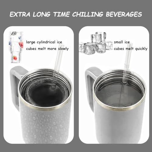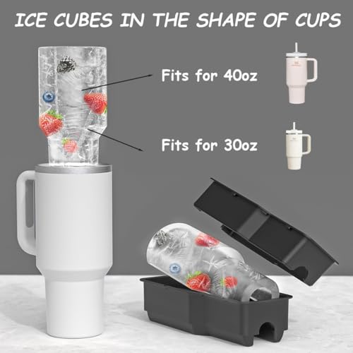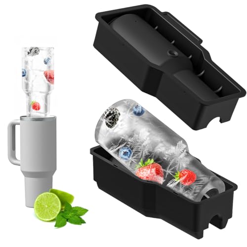 AGGRAD - قوالب مكعبات الثلج مع اغطية لكوب ستانلي، قوالب مكعبات الثلج من السيليكون مع اغطية قابلة للازالة وقابلة لاعادة الاستخدام، قوالب مكعبات ثلج نصف اسطوانية مفرغة الكل في واحد، ادوات صنع مكعبات ثلج كبيرة