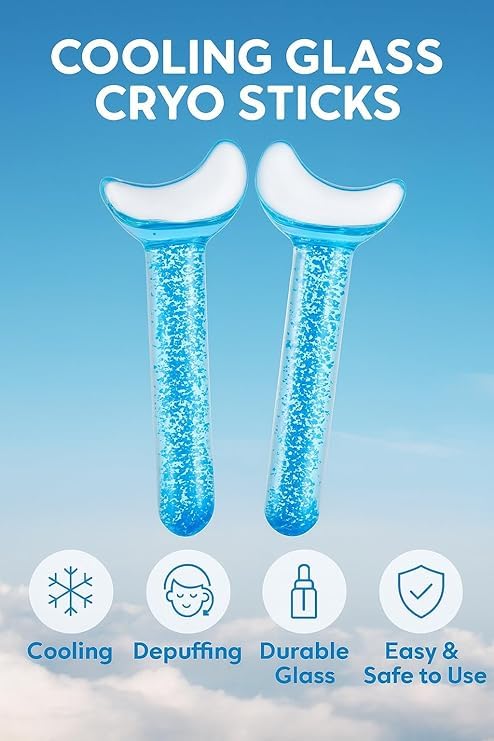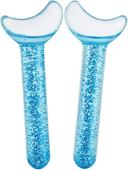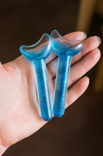 Generic - كرات ثلج لتدليك الوجه DRS-388، أداة تبريد الوجه لتخفيف الانتفاخات وشد لون البشرة، آمنة للاستخدام في الفريزر، كرات تجميل زجاجية سميكة للغاية لروتين العناية بالبشرة اليومي، (أزرق)