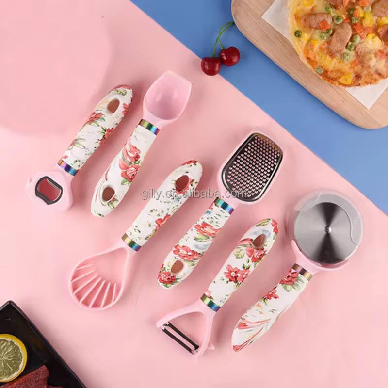 Generic - طقم أدوات مطبخ 6 قطع متعدد الاستخدام مع حامل – شامل فتاحة، قشارة، مبشرة، معلقه آيس كريم، قطاعه بيتزا، شيالة مكرونة KA