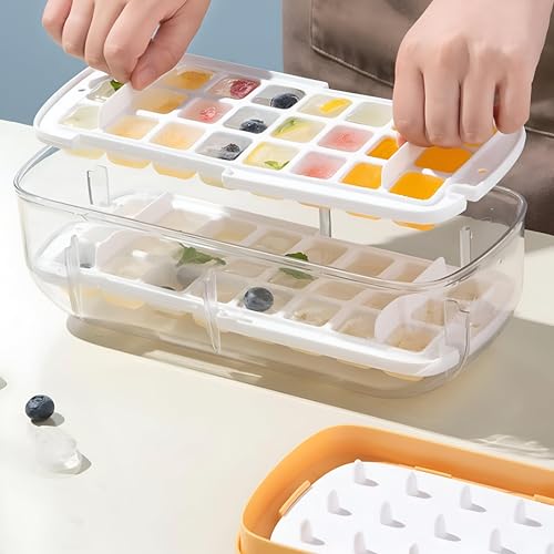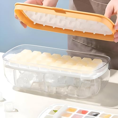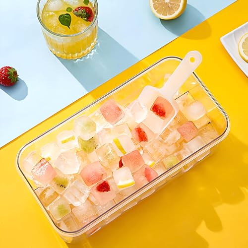 Generic - علبة صنع مكعبات الثلج، قالب صنع ثلج أكريليك شفاف مع غطاء بلون نابض بالحياة لصنع مكعبات ثلج لعصير الفاكهة قابل لإعادة التعبئة والتعامل المريح