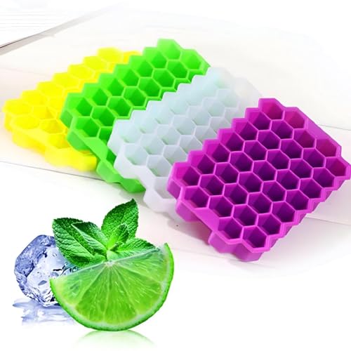Generic - صانعة الثلج - صواني من السيليكون الامن غذائيا مع اغطية للثلج المجمد 37 مكعب، سهلة الاستخدام للمشروبات المبردة والويسكي والكوكتيلات وتعزيز عرض المشروبات (4 قطع من الالوان المعروضة)