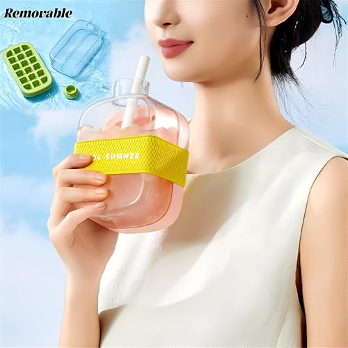 Generic - صانع الثلج - كوب زجاجة ثلج صيفي رائع متعدد الاستخدامات 2 في 1 مع ماصة، مكعبات ثلج بدون لمس، تصميم بغطاء للمنزل والمكتب والنزهات الخارجية والسفر بألوان نابضة بالحياة متعددة