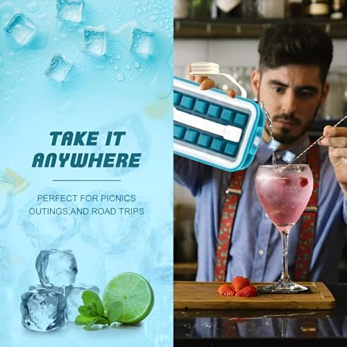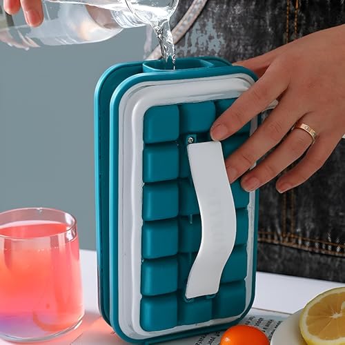 Generic - قالب ثلج من السيليكون مع غطاء لصنع مكعبات صحية بتصميم آمن للطعام يحافظ على نضارة المكعبات لفترة طويلة وحجمه المدمج مثالي لتنظيم الثلاجة أو المبرد