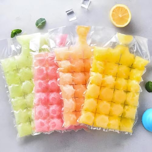 Generic - قالب ثلج - مكعبات تجميد متينة للعصائر الطبيعية والماء، سعة 24 مكعب مع 10 اكياس قابلة لاعادة الاستخدام للتحكم في الكميات وسهولة التخزين في عبوة صغيرة