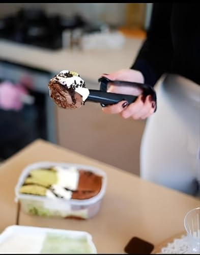 - مقبض فاخر مريح مع مقبض بلاستيكي غير قابل للانزلاق يوفر ثباتًا مريحًا وآمنًا حتى في الظروف الباردة، مما يقلل من التعب أثناء التقديم. تم تصميم المقبض للتحكم المستمر، مما يسمح لك بغرف ونقل الحلوى الناعمة أو الصلبة المجمدة بثقة، عامًا بعد عام.