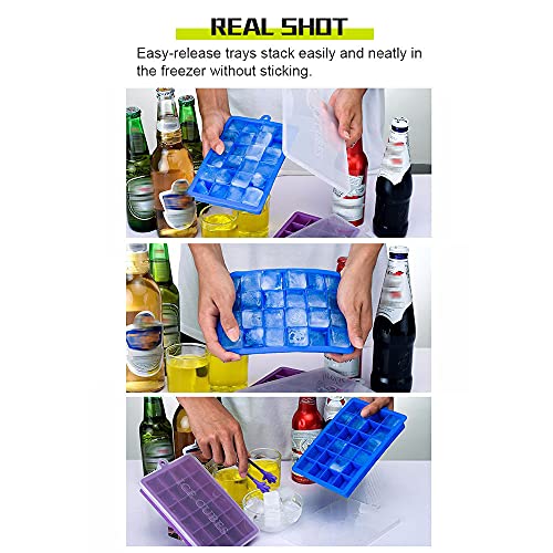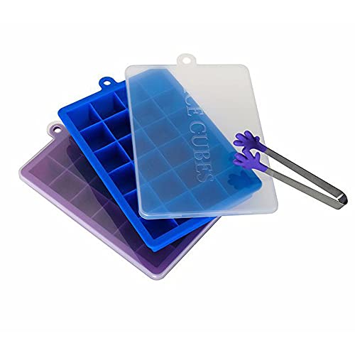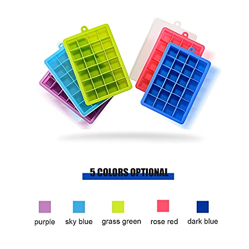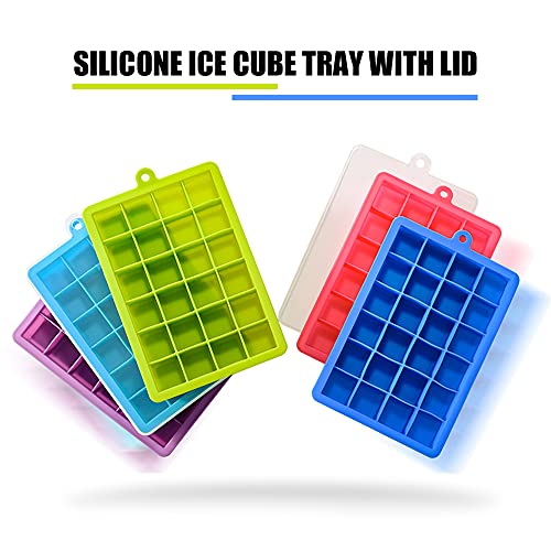 Irovami - قالب مكعبات ثلج سيليكون بغطاء، قوالب ثلج بتجويفات مربعة، قالب خبز خالٍ من مادة البيسفينول أ، سهل الفك مناسب للعصير ولطعام الأطفال والشوكولاتة، 24 فتحة