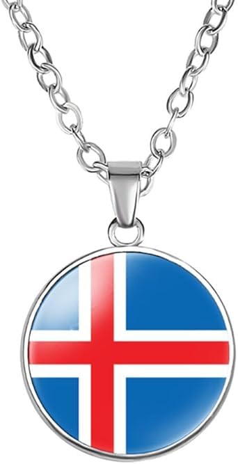 Generic - قلادة علم ايسلندا، تصميم العلم الوطني، سلسلة معدنية 50 سم، فضي