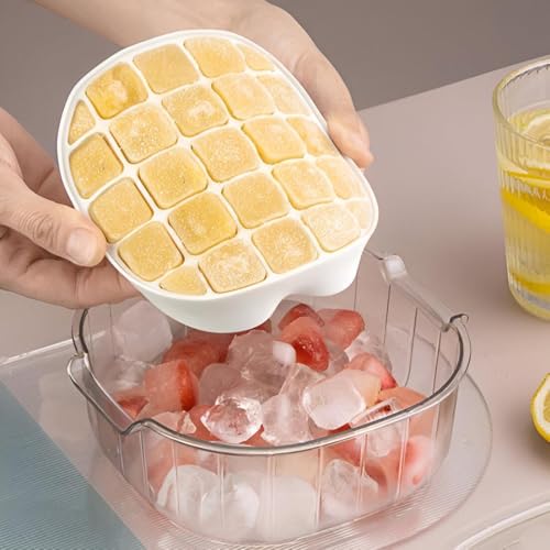 - يتضمن القالب حاوية مخصصة لإزالة الثلج، مما يسمح باستخراج مكعبات الثلج بسهولة وكفاءة بمجرد تجميدها. تعزز هذه الميزة تجربة المستخدم بشكل عام من خلال تبسيط عملية إخراج مكعبات الثلج من القالب دون أي متاعب.