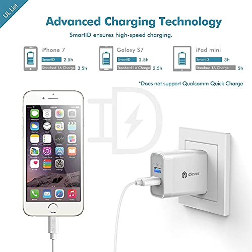iClever - I كليفير شاحن USB مزدوج بقدرة 24 وات، يو اس بي، أحمر