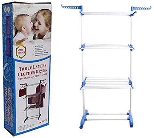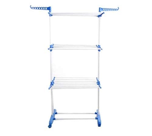 Other - رف تجفيف من ايكوم، مصنوع من الستانلس ستيل، لون فضي، مناسب للملابس والغسيل، بتصميم قابل للطي مع 3 طبقات