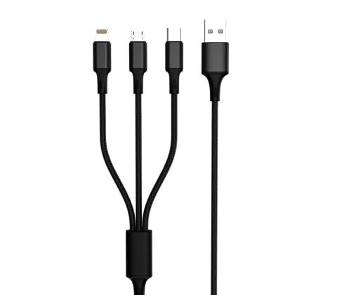 - كابل 3 في 1 مضفر من الألومنيوم للشحن السريع 2.4 أمبير بطول 1 متر، اللون: أسود، المادة: نايلون مضفر + غلاف ألومنيوم مايكرو USB نوع سي + لايتنينج، صنع في الصين