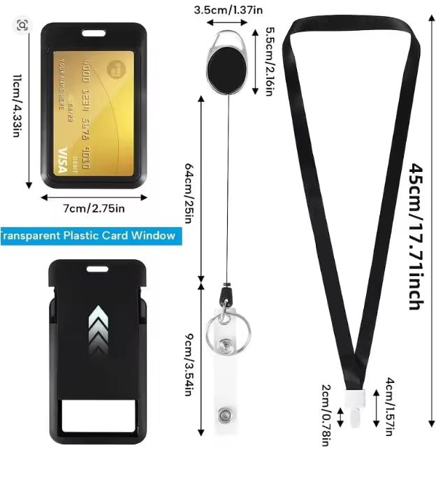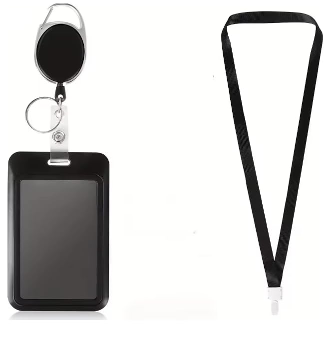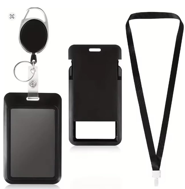 Generic - حامل شارة الهوية + حافظة عمودية + حامل شارة قابل للسحب واقية للبطاقات مع نافذة شفافة لبطاقات الائتمان وبطاقات الهوية ورخص القيادة للمكاتب والموظفين والطلاب ( اسود)