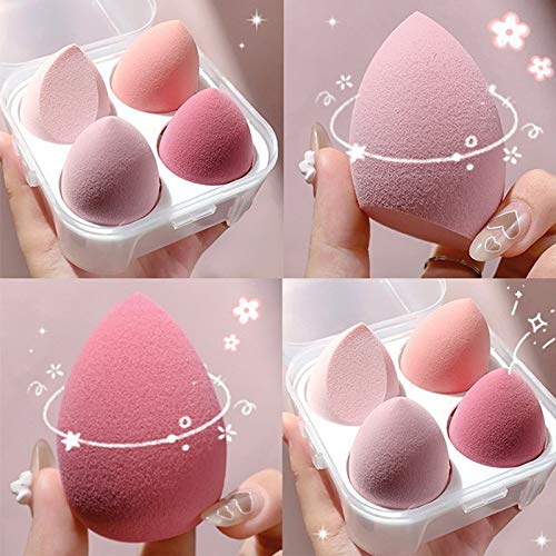 generic - اسفنجة مزج المكياج على شكل بيض من ايداماكي، إسفنجات خالية من اللاتكس لتغطية خالية من العيوب ومزج كريم الأساس ومستحضرات التجميل الأخرى - للاستخدام الرطب والجاف، مجموعة من 4 قطع (زهري)