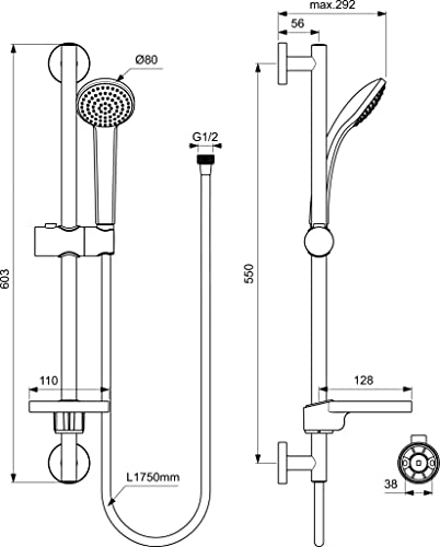 Ideal Standard - طقم دش حمام مطر B9501AA 9501 ملم مع مقبض احادي الوظيفة 600 ملم كروم من ايديال ستاندرد