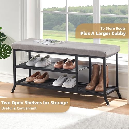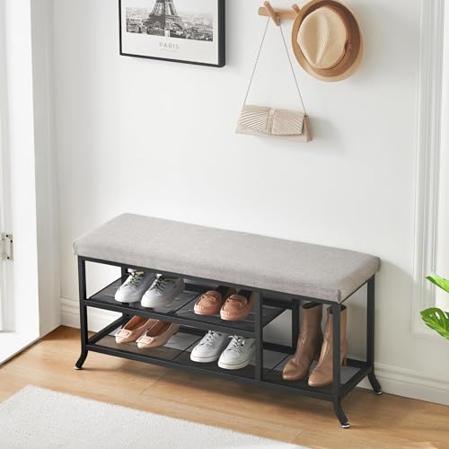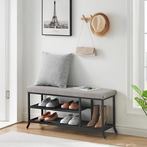 IDEALHOUSE - مقعد تخزين أحذية بطبقتين للمدخل، منظم تخزين بتصميم عملي مع وسادة، رف بهيكل معدني قابل للتعديل للمدخل وغرفة النوم وغرفة المعيشة والسكن الجامعي من ايديال هاوس