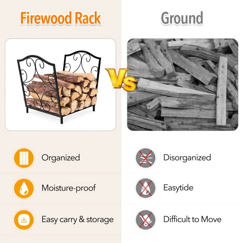 IDEALHOUSE - ايدل هاوس رف حطب ديكوري للمدفأة، رف تخزين حطب حديدي داخلي/خارجي، حامل حطب مكدس، رف خشبي للحطب (S)