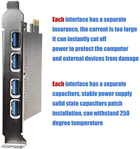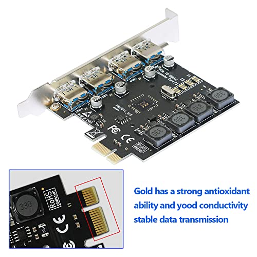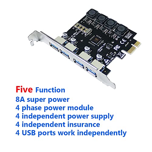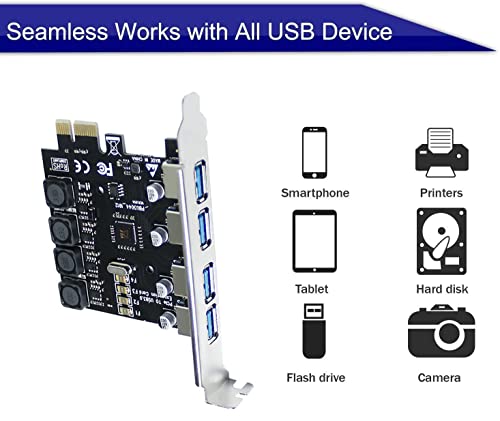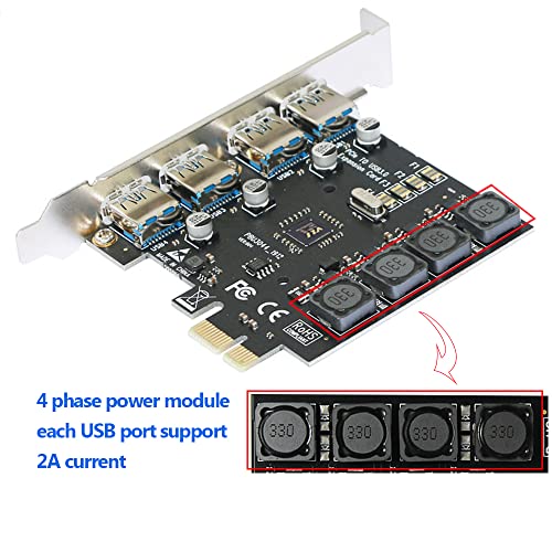 IDEAPRO - 4 منافذ PCI-E الى USB 3.0 PCI اكسبرس بطاقة توسيع بطاقة PCIe فائقة السرعة تصل الى 5Gbps، لا يوجد موصل طاقة اضافي لاجهزة الكمبيوتر المكتبية ويندوز اكس بي/فيستا/7/8/10 (4 منافذ)