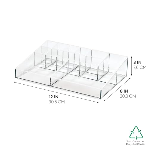 InterDesign - منظم مستحضرات تجميل بـ 13 مساحة تخزين من سلسلة سيجنتشر من تصميم سارة تانو، مصنوع من بلاستيك بي اي تي، حامل فُرَش مكياج باللون الشفاف/الأبيض غير اللامع من اي ديزاين، بأبعاد 30.5×20.3×7.5 سم