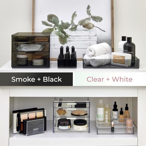 - مادة متينة: منظم درج المكياج مصنوع من بلاستيك بي اي تي المتين الخالي من البيسفينول أ مع لمسة نهائية شفافة ولمسات بيضاء غير لامعة توفر نمطًا وتنظيمًا يدوم طويلاً.