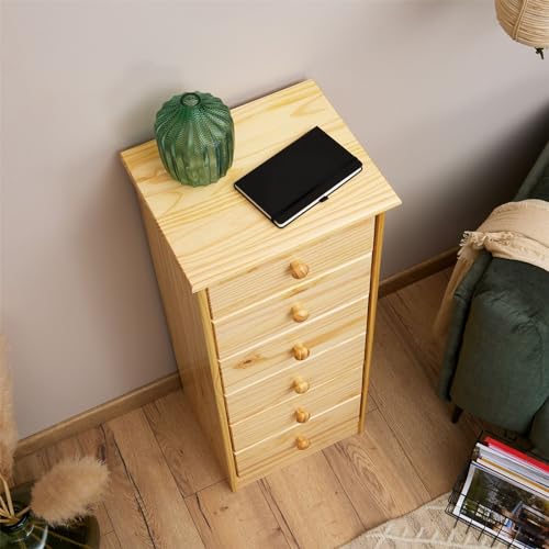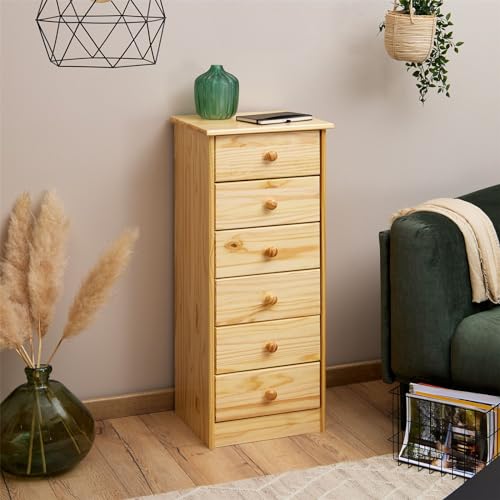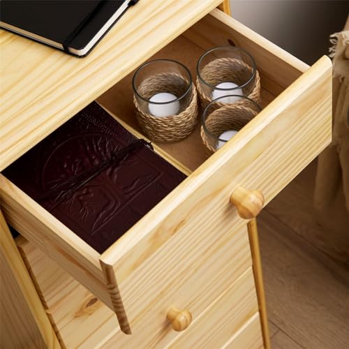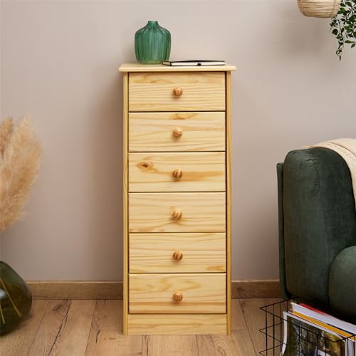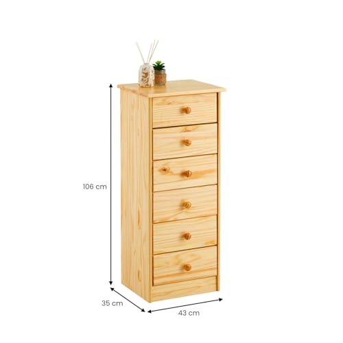 IDIMEX - خزانة ذات أدراج خزانة جانبية طويلة روندو، 6 أدراج، صنوبر صلب من اديميكس، طلاء طبيعي