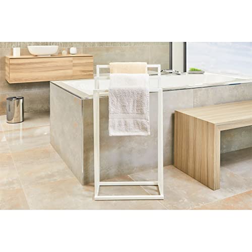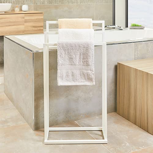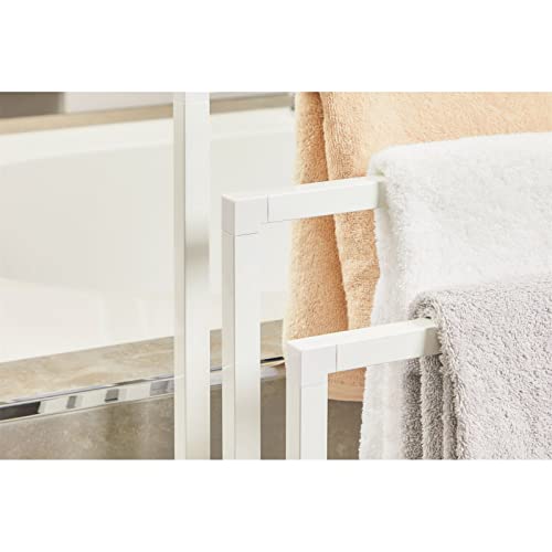 - حامل المناشف القائم بذاته هذا مصنوع من المعدن مع لمسة نهائية مطلية باللون الأبيض غير اللامع