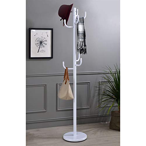 IDIMEX - رف معاطف ميلا للملابس على حامل، ارتفاع 174 سم، قاعدة دائرية و8 خطافات بارتفاع 3 الى متوسط الارتفاع، خزانة مدخل معدنية مطلية باللون الابيض من ايديمكس