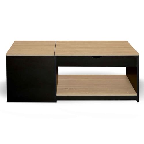 IDMarket - ترابيزة قهوة إيليا قابلة للرفع بطبقتين مع صندوق خشبي أسود وتأثير خشب الزان من اي دي ماركت