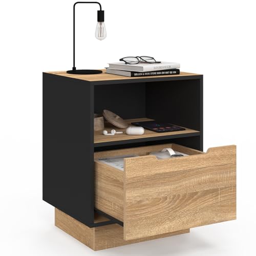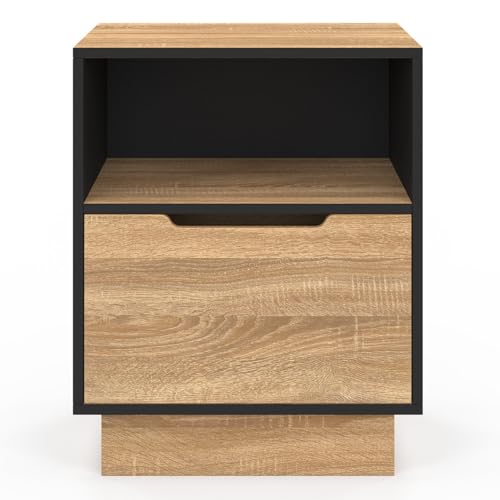 IDMarket - مجموعة من 2 طاولة بجانب السرير من اي دي ماركت - اوكسانا بدرج واحد مع مكانة من خشب الزان والاسود