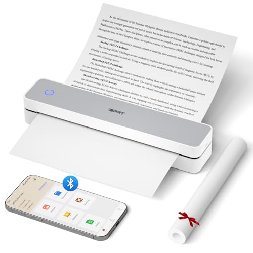iDPRT - اي دي بي ار تي طابعة حرارية محمولة MT610 برو لاسلكية للسفر، طابعة بلوتوث بدون حبر 300DPI تدعم 8.5 انش × 11 انش حروف امريكية وورق حراري A4 وA5 للمنزل، متوافقة مع iOS واندرويد واللاب توب، ابيض