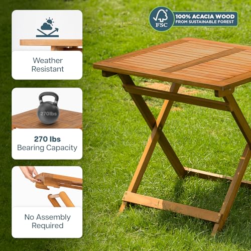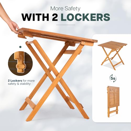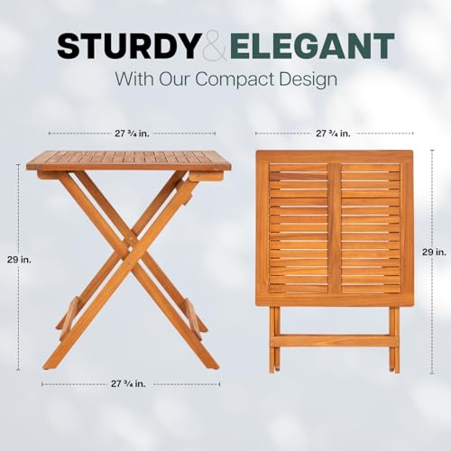 - طاولة بيسترو خارجية متينة ومستدامة من الأكاسيا - طاولتنا الخشبية القابلة للطي مصنوعة من خشب الأكاسيا المعتمد من مجلس رعاية الغابات من أجل المتانة؛ مع طلاء زيتي عالي الجودة، فإن طاولة الفناء الخشبية محمية من الأشعة فوق البنفسجية والظروف الجوية
