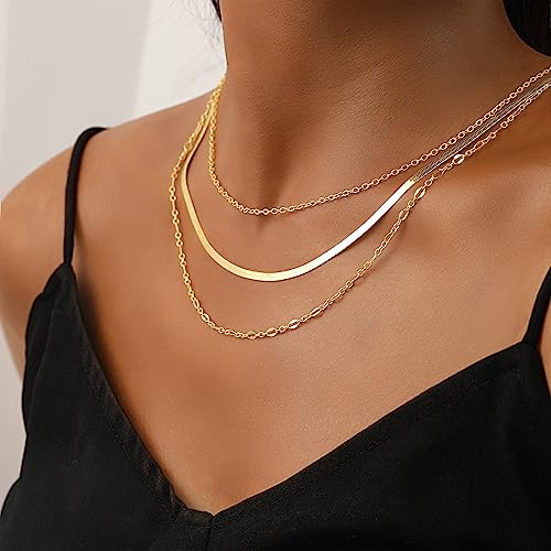 iF YOU - طقم عقد شوكر ذهبي للنساء من 6 قطع بقلادة زركونيا مكعب مطلية بالذهب عيار 14 قيراط قلادات عصرية انيقة بطبقات على شكل ثعبان لهدايا المجوهرات