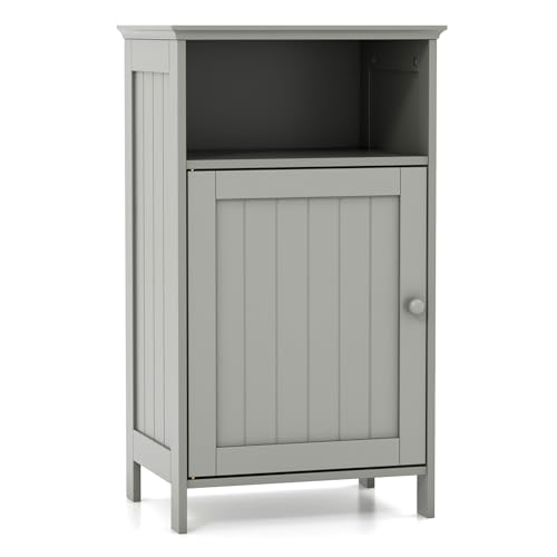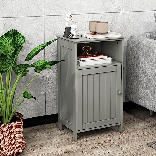 IFANNY - دولاب تخزين للحمام من ايفاني، دولاب أرضية خشب بأبواب، دولاب جانبية بأرفف قابلة للتعديل، دولاب صغير قائم بذاته للحمام وغرفة الغسيل والمعيشة وغرفة النوم (لون رمادي)