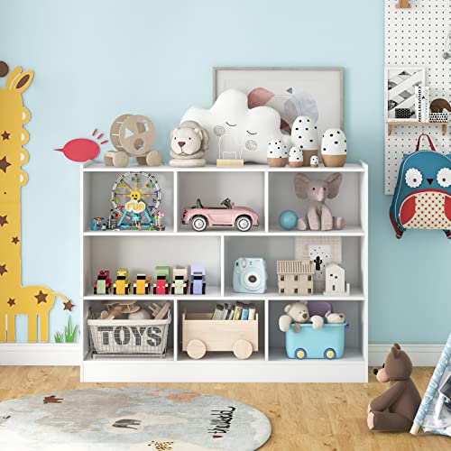 IFANNY - منظم تخزين ألعاب خشبي صغير برف لتنظيم اللعب للأطفال من 3 طبقات و8 مكعبات، لغرفة الأطفال وغرفة اللعب والفصول الدراسية والحضانة من ايفاني، أبيض