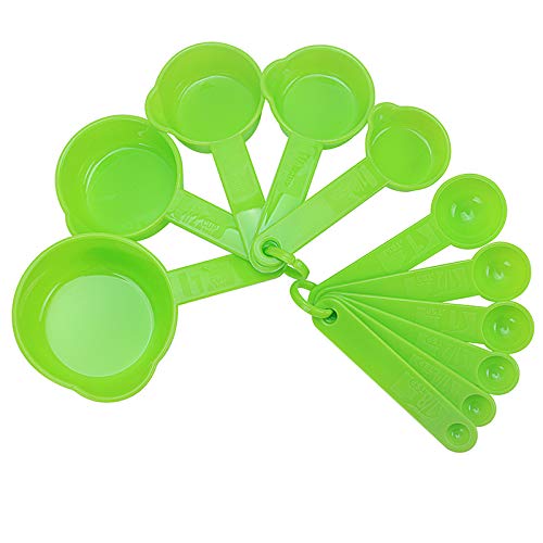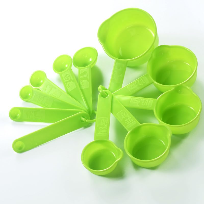 IFFMYJB - مجموعة أكواب وملاعق قياس من اي اف اف ام واي جيه بي، 11 قطعة من أكواب وملاعق قياس بلاستيكية للمكونات الجافة والسائلة، مجموعة من 5 أكواب قياس و6 ملاعق قياس للطبخ والخبز، لون أخضر