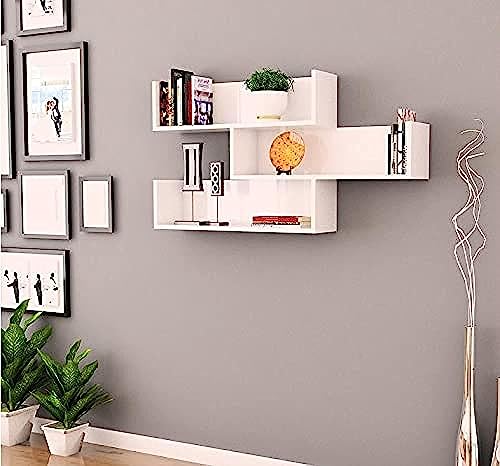 Ifurniture - عدد 3 من الارفف المعلقة من اى فيرنتشر - ابيض، خشب مُصنع