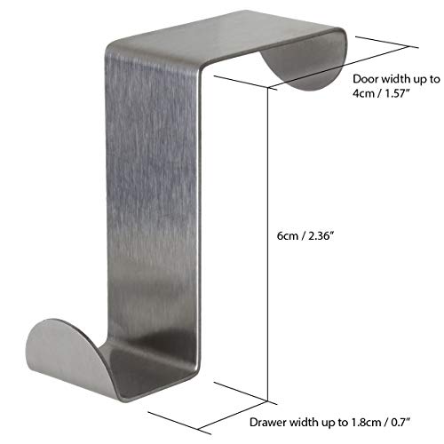igadgitz home - مجموعة خطافات تعلق فوق الباب قابلة للعكس من الستانلس ستيل للخزانة والباب والمطبخ والحمام والدولاب من اجادجيتز هوم، 4 قطع، موديل U6898-KIT، معدن، فضي، الحد الأقصى للوزن الموصى به: 2.5 كيلوجرام