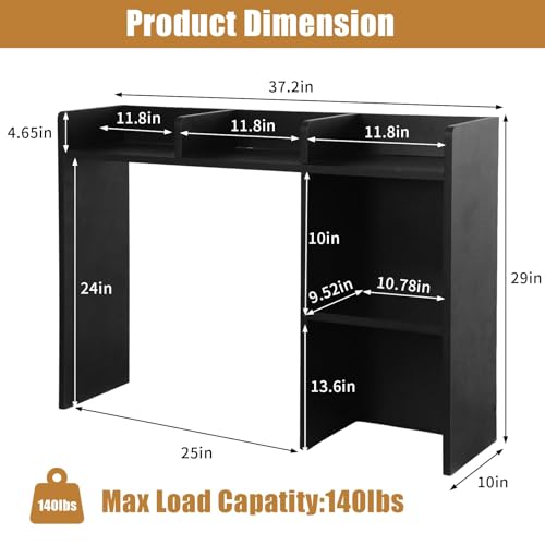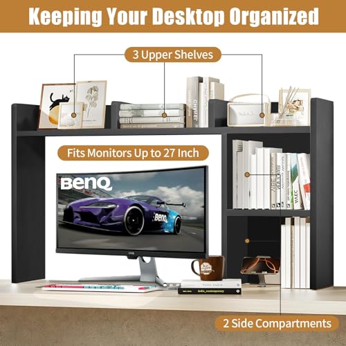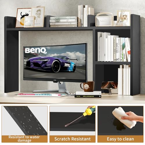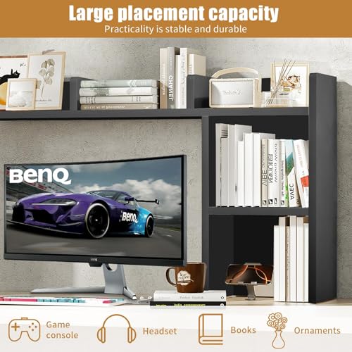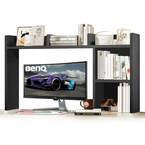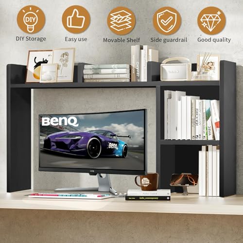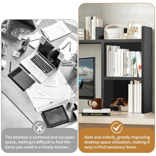 IGTOPS - رف مكتب من ايجتوبس، 95 × 74 سم، خزانة كتب مكتبية، خزانة كتب متعددة الطبقات، رف طاولة مع رفين وحجرة مفتوحة، خزانة كتب خشبية، مناسب لطاولة العمل، طاولة المكتب، المطبخ (اسود ايه)